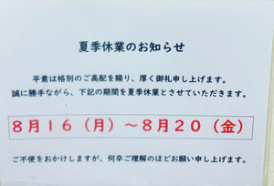 誠に勝手ながら8月16(月)〜8月20日(金)を夏季休業日とさせて頂きます。ご不便をおかけしますが、何卒ご...