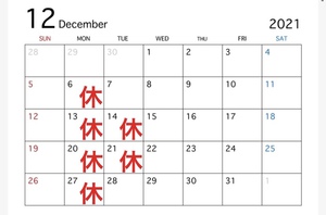12月の定休日のお知らせ!