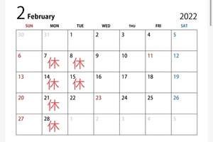 2月の定休日のお知らせ!!