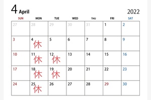 4月の定休日のお知らせ!!