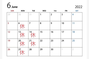 6月の定休日のお知らせ!!