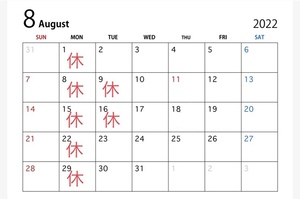 8月の定休日のお知らせ!!