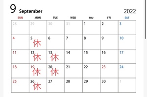 9月の定休日のお知らせ!!