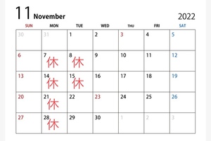 11月の定休日のお知らせ!!
