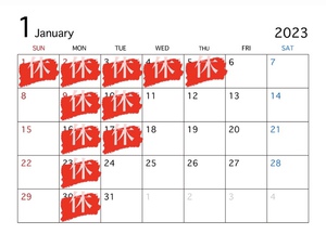 1月の定休日のお知らせ!!