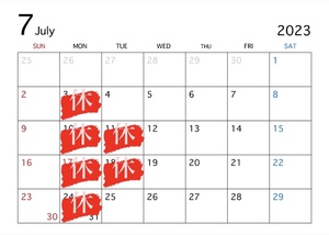 7月の定休日のお知らせ!!