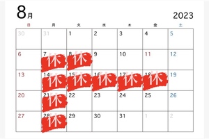 8月の定休日のお知らせ!!